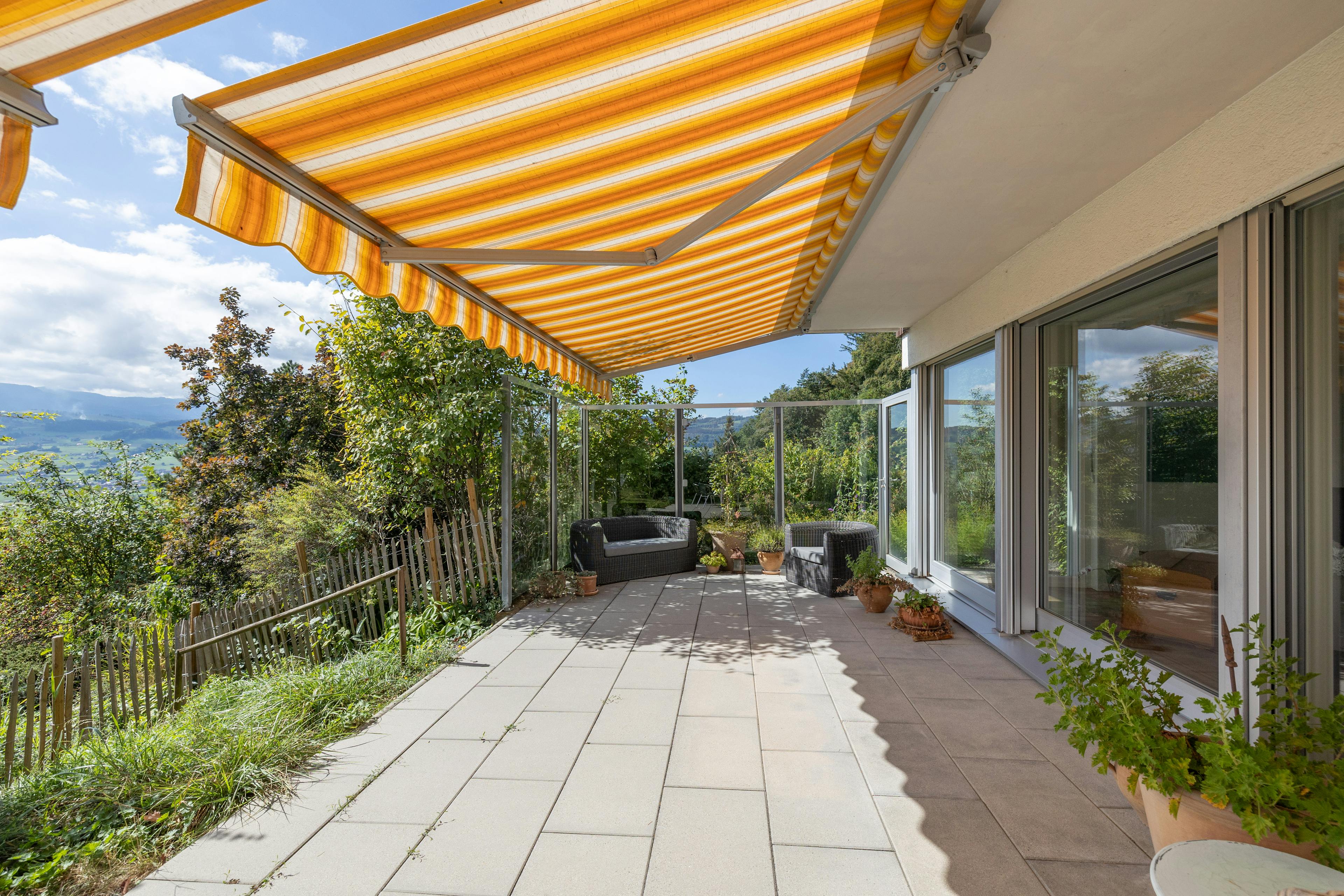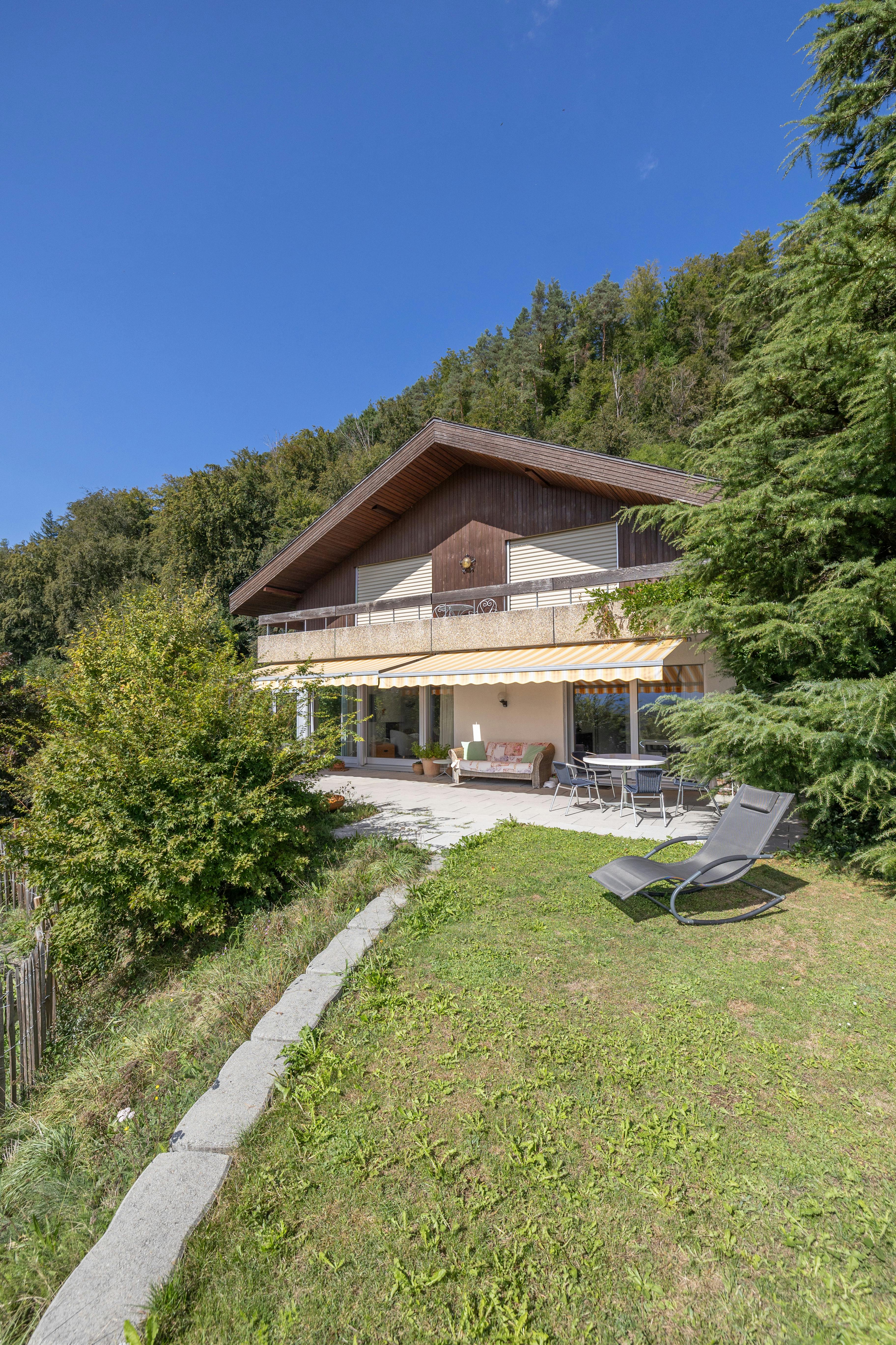 Das freistehende Einfamilienhaus präsentiert sich auf einem ansprechenden Grundstück an sonnenverwöhnter, leichter Hanglage. Der wunderbare Gartensitzplatz ist wie geschaffen für gesellige Grillabende mit Ihren Liebsten und mit Freunden.