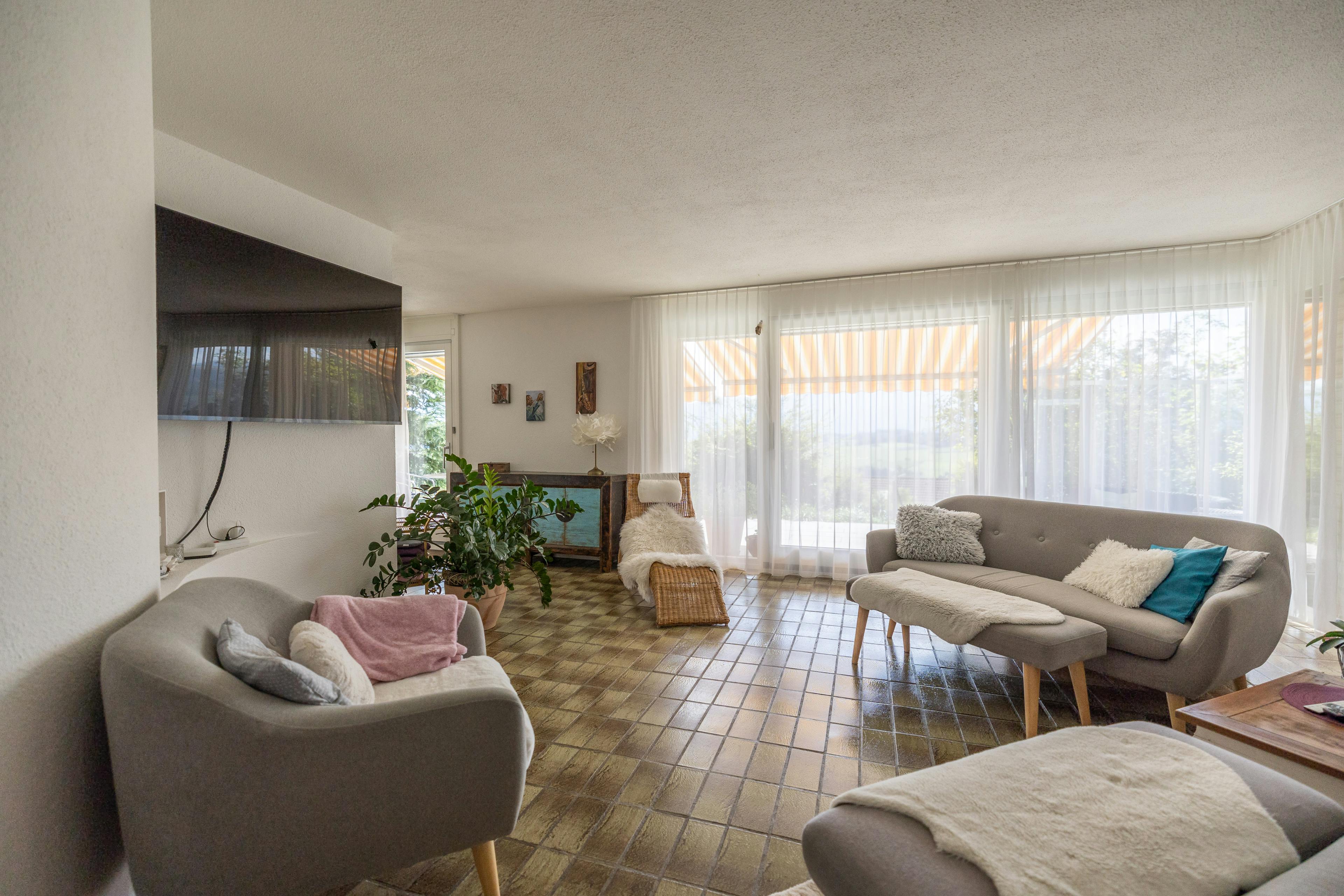 Wir verkaufen ein sehr schönes 6 1/2-Zimmer-Einfamilienhaus an äusserst attraktiver und ruhiger Wohnlage mit wunderbarem Blick auf die Bergketten und den Gerzensee.